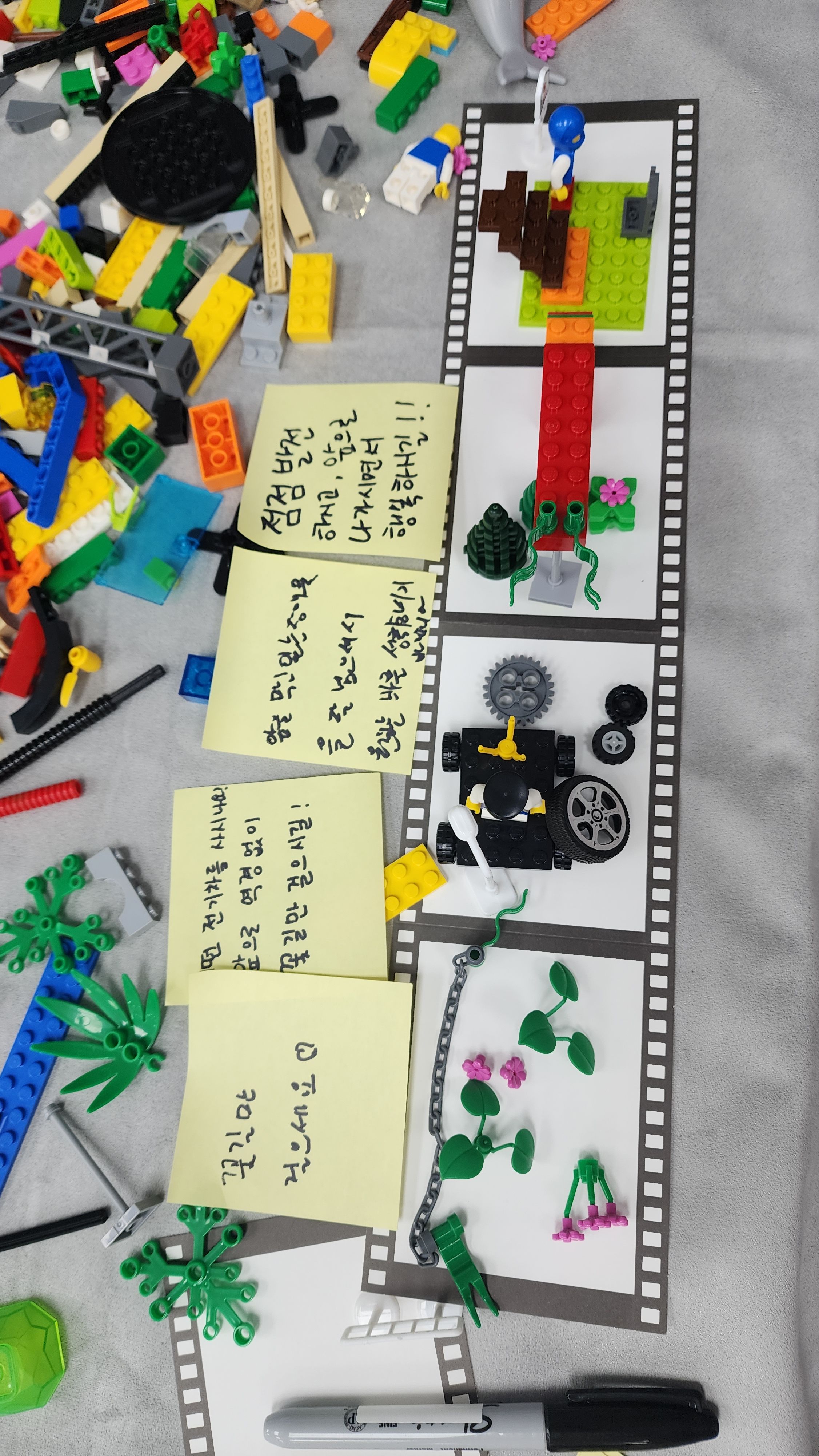 이후에는 각자의 모델을 하나의 베이스 플레이트 위에 모아 ‘우리의 강점을 통합한 집단 모델’을 만들었다. 이 과정은 단순히 블록을 모으는 일이 아니라, 각자의 강점이 회사 성장에 어떻게 기여할 수 있는지 함께 탐색하는 협력적 과정이었다.